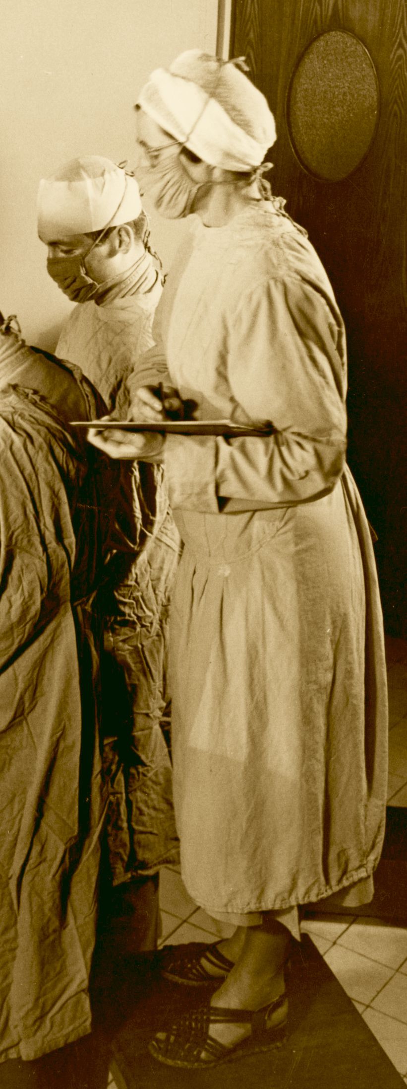 Peter Bent Brigham Hospital’s well-known medical Illustrator, Mildred B. Codding, observes and draws a surgical procedure, circa 1930s. Codding illustrated many books and journal articles for Harvey Cushing and other PBBH MDs, including the renowned Atlas of Surgical Operations by Robert M. Zollinger and Elliott C. Cutler